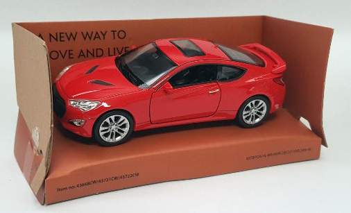 제네시스 쿠페는 1:38 스케일로 재현된 완성 모형자동차 이며, 실제 모습과 비슷하게 표현한 것 같습니다.