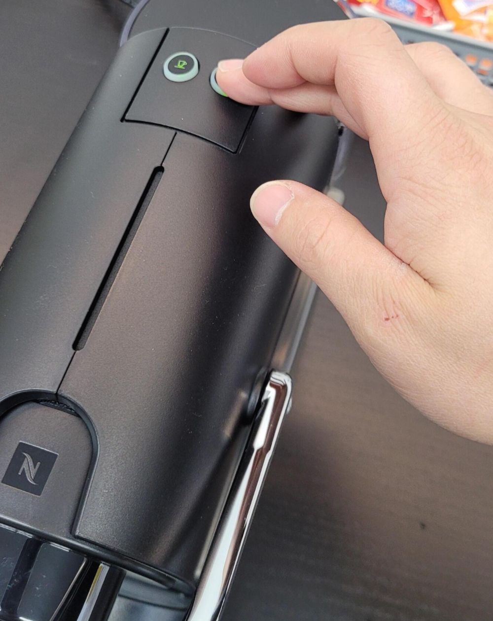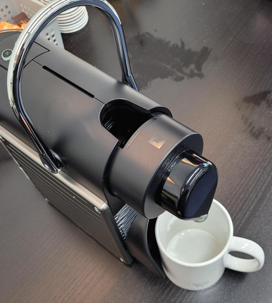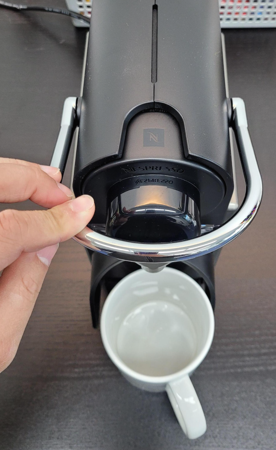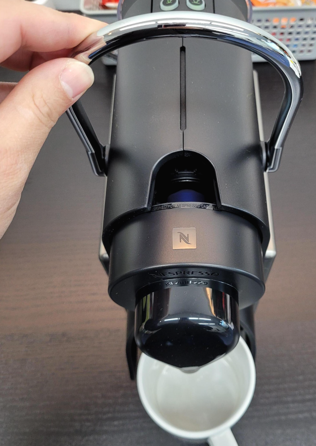 캡슐을 넣어 주신 다음, 레버를 내려 주면 끝.