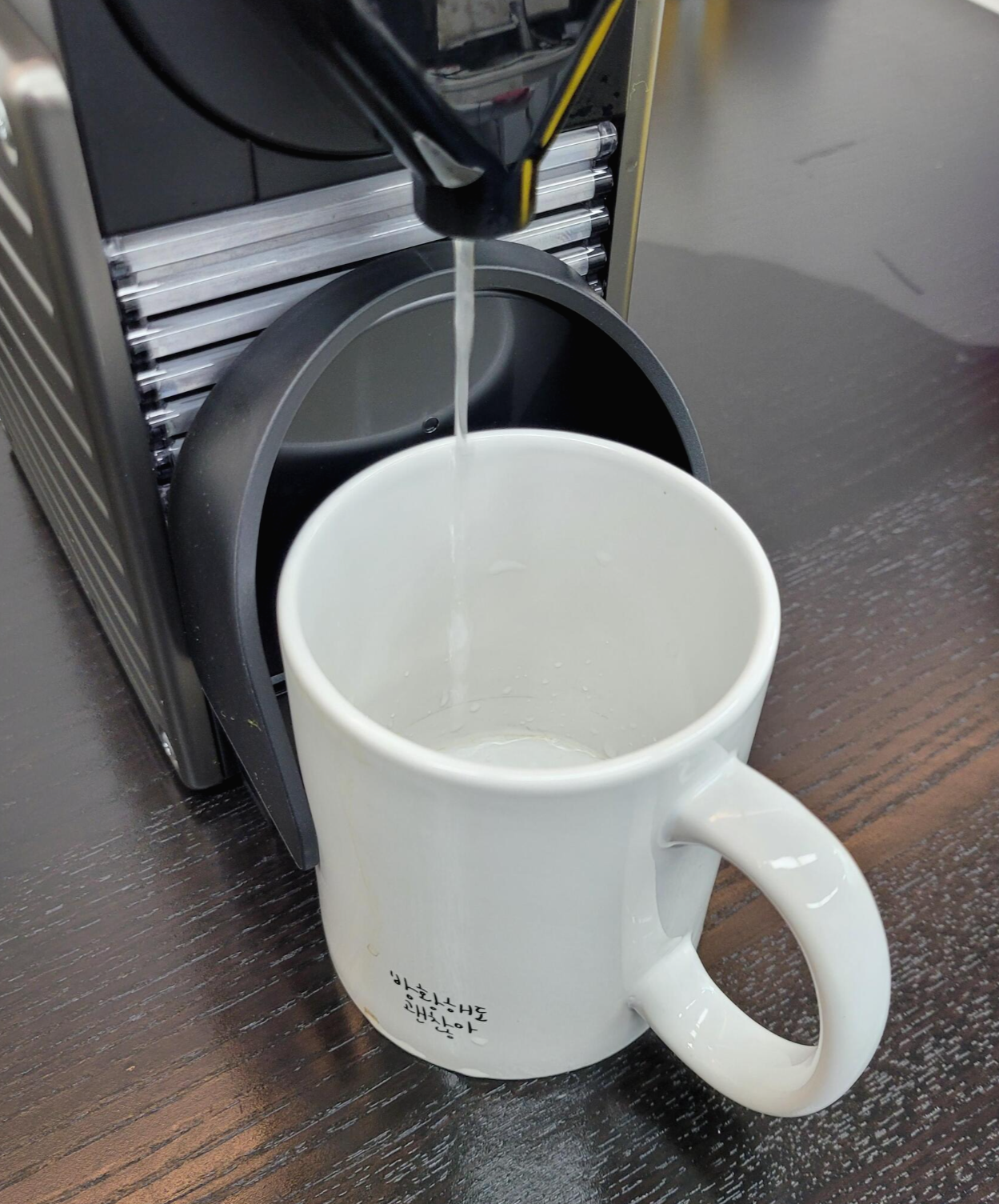 처음에 바로 캡슐을 넣지 말고, 한 두번 물을 뺴주는게 좋다고 해서