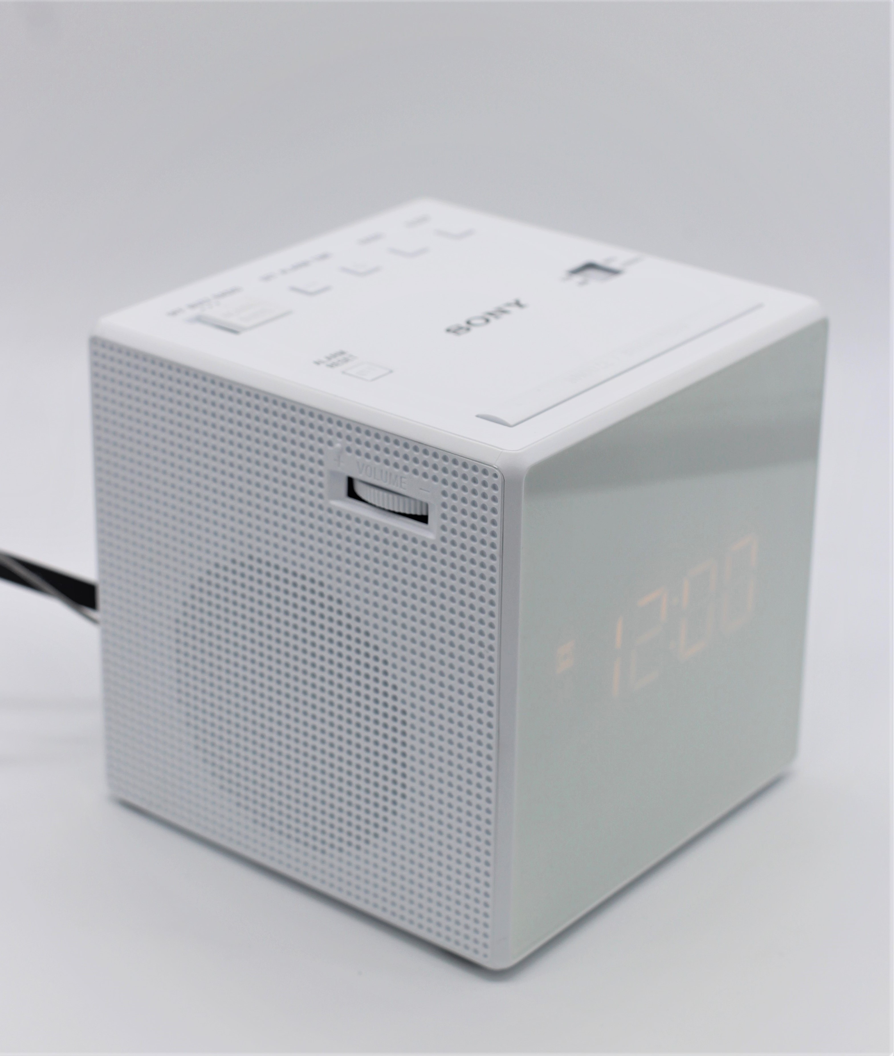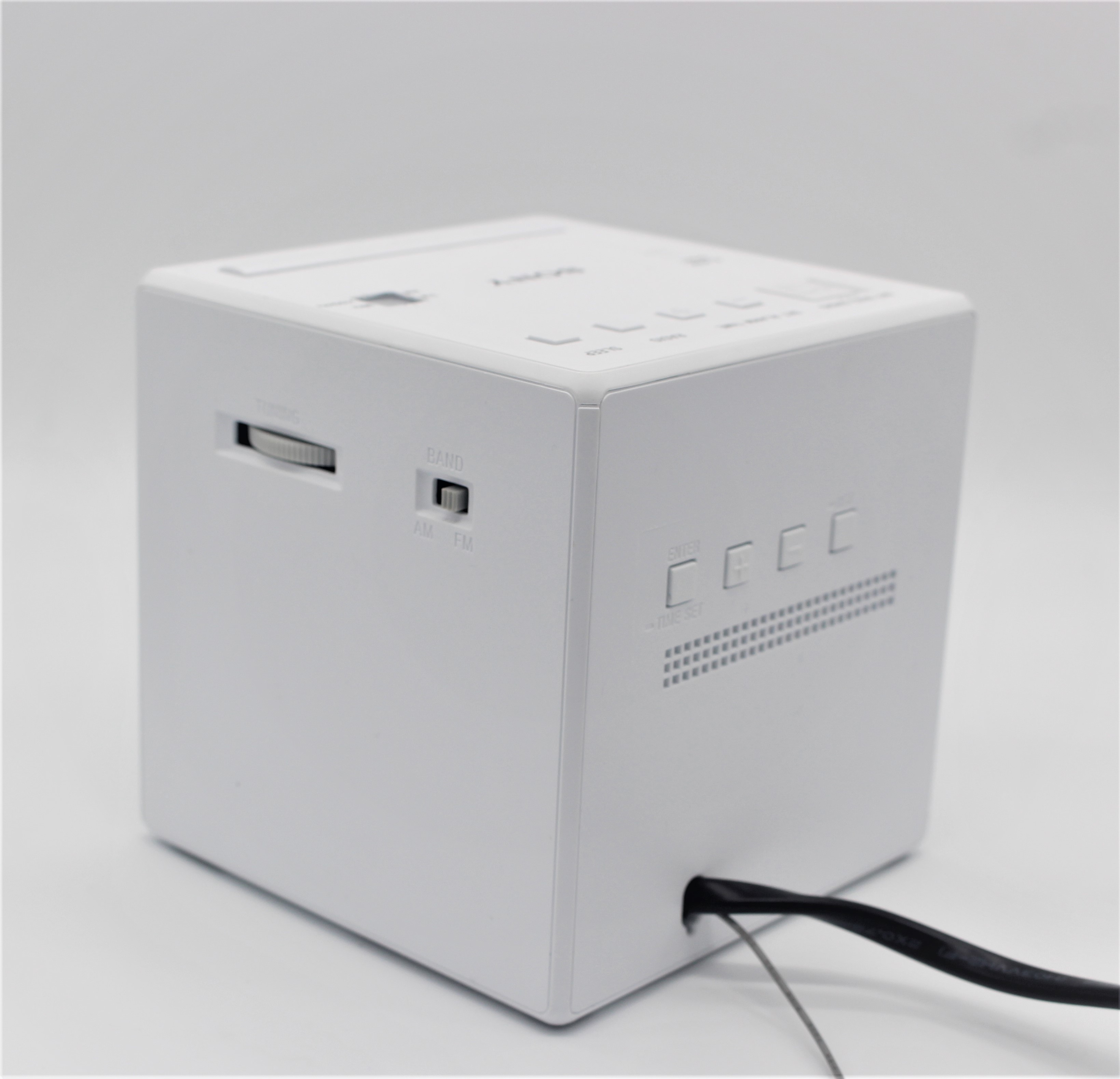 정면에서 본 소니 ICF-C1입니다. 디자인 이쁘지 않나요? 정사각형으로 되어 있어서 무난하니 질리지 않는것 같아요.